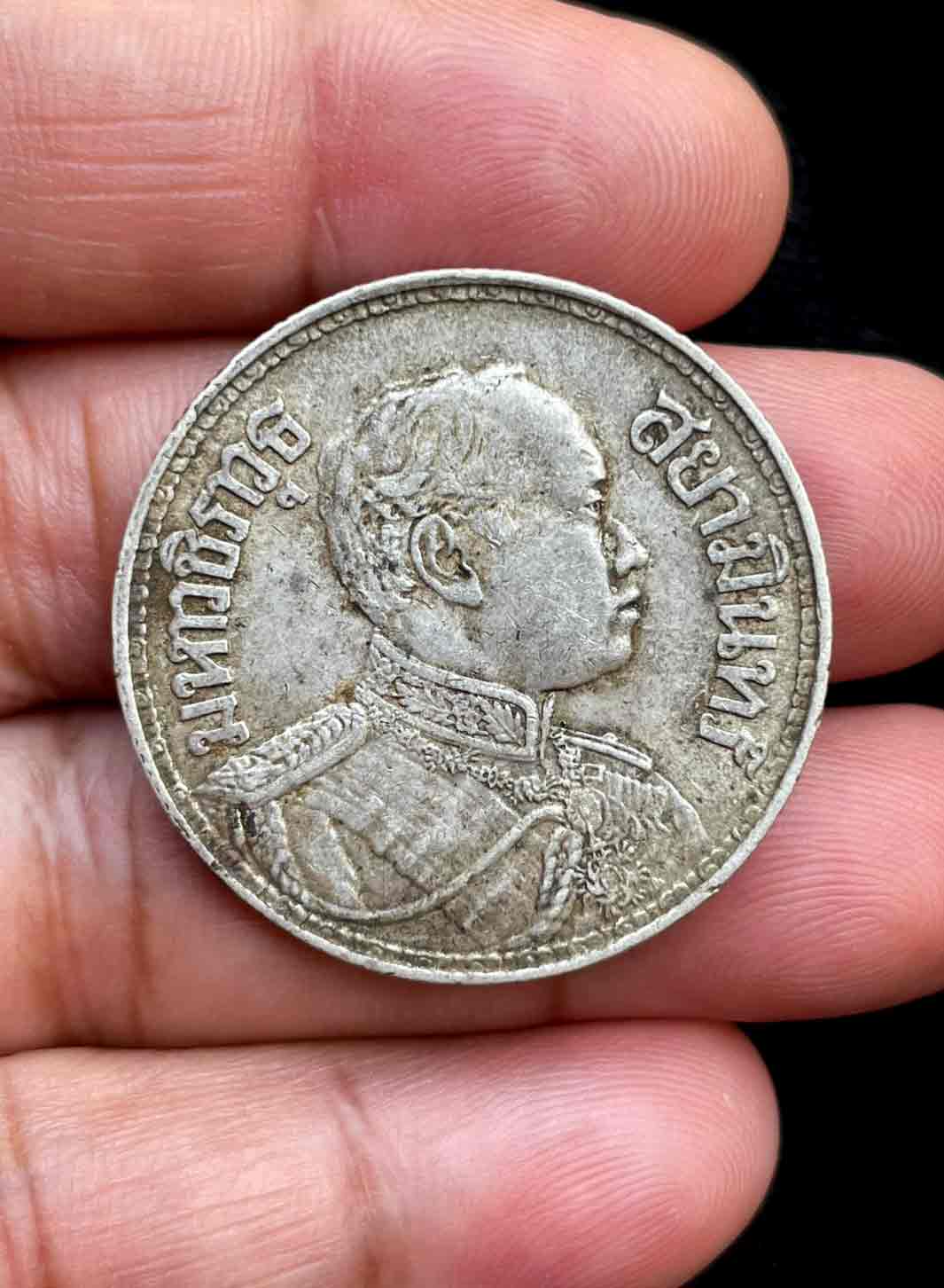 วัดใจ เหรียญเงิน 1 บาท รัชกาลที่ 6 หลังช้างสามเศียร ปี 2458 เนื้อเงิน (น้ำหนัก 15 กรัม) ##19