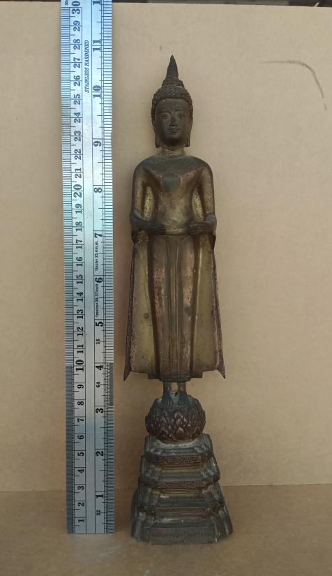 พระบูชาหลวงพ่อวัดบ้านแหลม ยุคต้น เนื้อทองเหลือง สูง 11 นิ้วรวมฐาน ไม่มีบาตร