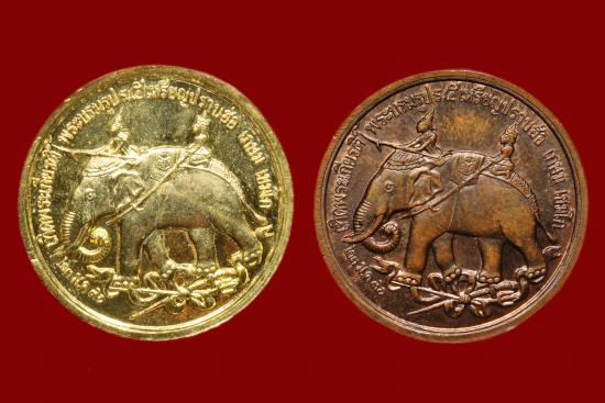 หลวงพ่อเกษม เขมโก รุ่น ปราบฮ่อ ปี 36 กะไหล่ทอง+ทองแดง2 องค์ |
