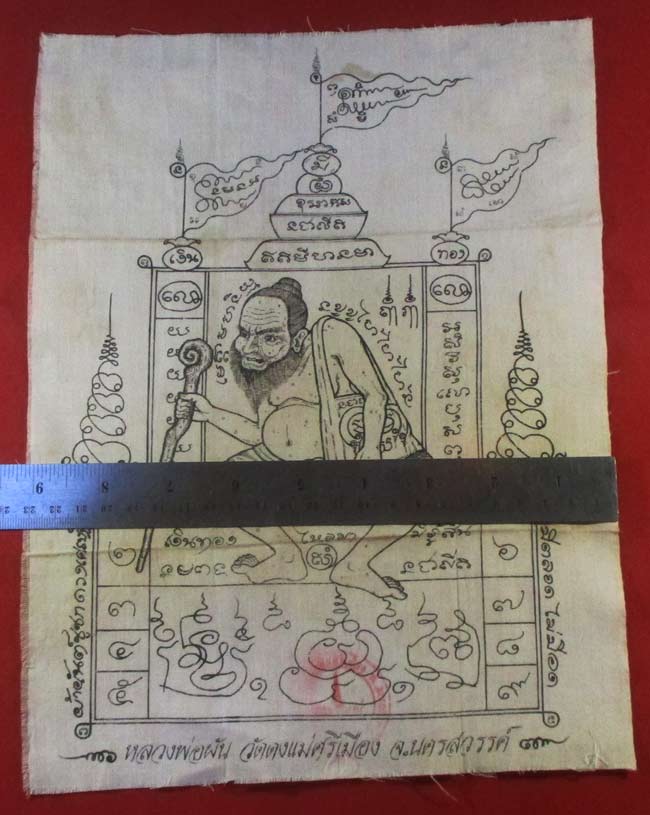 ผ้ายันต์ชูชกเก่า ติดร้านค้า หรือพกติดตัว เรียกโชคเรียกลาภ เรียกคนเข้าร้าน ค้าขายดี คนเข้าร้านค่าไม่มีขาด เรียกทรัพย์(หลวงพ่อผัน วัดแม่ศรีเมือง จ.นครสวรรค์ |