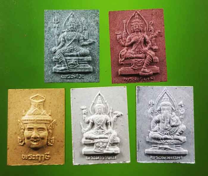 พระชุด 5 องค์ เนื้อผงสภาผู้แทนราษฏร รุ่น สก.เฉลิมพระชนมพรรษาราชินี 6 รอบ ปี 2547 พิมพ์ พระฤาษี ,พระศิวะ ,พระอิศวร, พระพรหม ,พระนารายณ์ ,พระพิฆเนศ