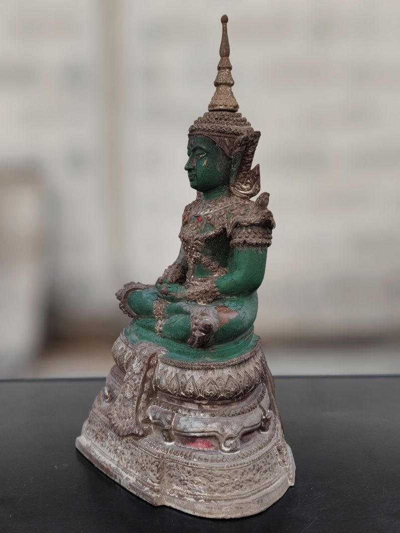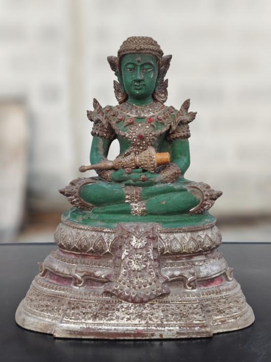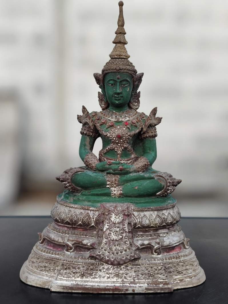 พระบูชาพระแก้วทรงเครื่อง ปลายเกศถอดได้ หน้าตัก 5 นิ้วสภาพสมบูรณ์ไม่มีซ่อมตามรูป