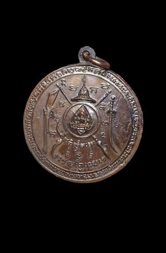 เหรียญกลม พระนเรศวรมหาราช ต้านศึก ศาลปากน้ำประแสร์ จ.ระยอง ปี 2515 เนื้อทองแดงรุ้งผิวสวยเดิมๆครับล็อกกษาปณ์ (หลวงปู่ทิม วัดละหารไร่, หลวงพ่อคง วัดวังสรรพรส ร่วมปลุกเสก)
