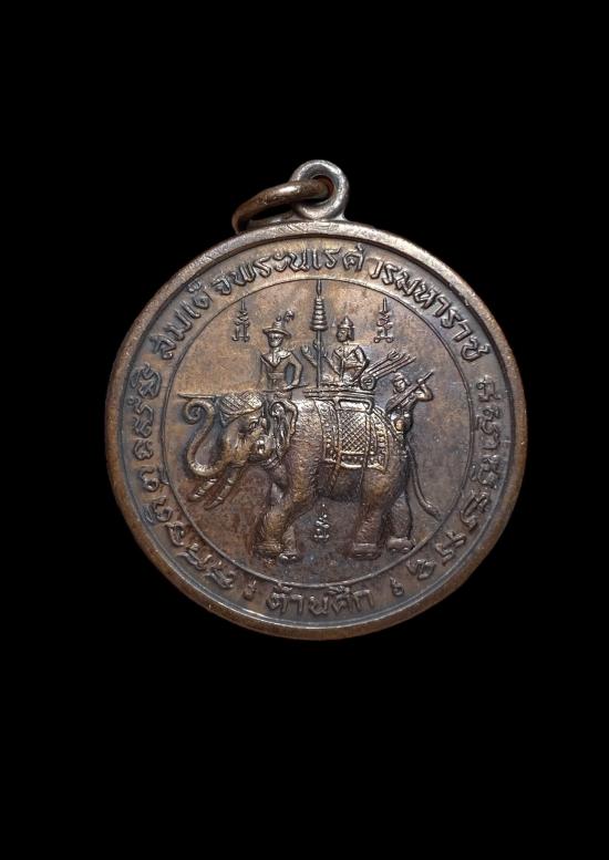 เหรียญกลม พระนเรศวรมหาราช ต้านศึก ศาลปากน้ำประแสร์ จ.ระยอง ปี 2515 เนื้อทองแดงรุ้งผิวสวยเดิมๆ พิธีใหญ่ เกจิร่วมปลุกเสกมากมาย