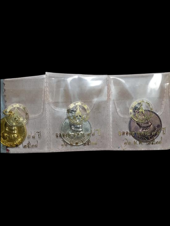 เหรียญหลวงปู่แหวน สุจิณโณ วัดดอยแม่ปั๋ง จ.เชียงใหม่ สร้างวาระฉลองอายุครบ ๙๘ปี เมื่อปีพ.ศ.๒๕๒๘ เนื้อกะไหล่ทอง กะไหล่เงิน ทองแดง