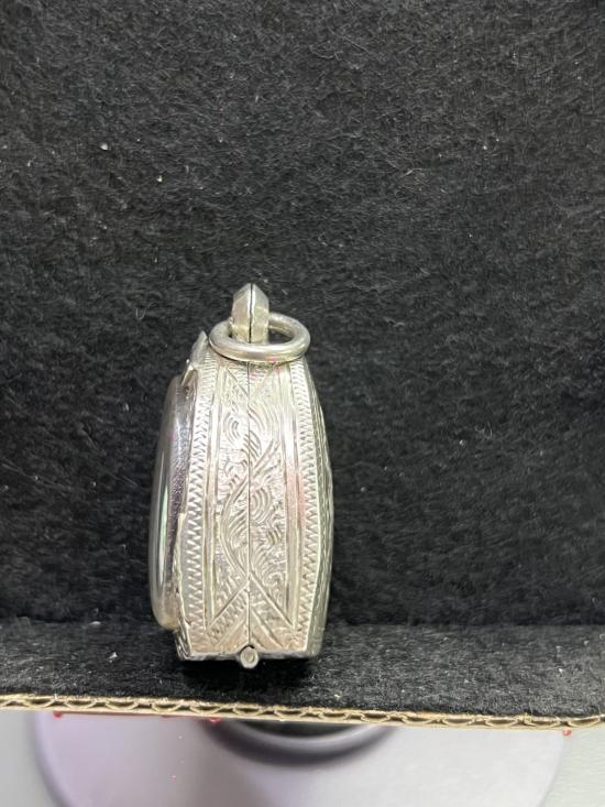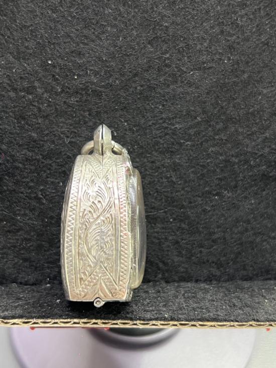 ตลับเงิน มือสอง ใส่พระรูปหล่อหลวงพ่อเงิน หรือใกล้เคียง สภาพสมบูรณ์ ใครหาอยู่ไม่ผิดหวังครับ ขนาดหน้าจอ กว้าง 19mm สูง 26mm หนา 12mm หนัก 15.75 กรัม |