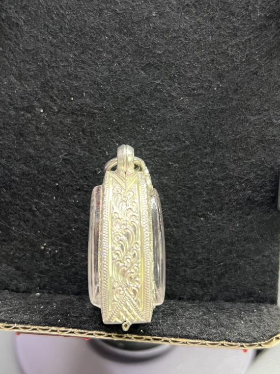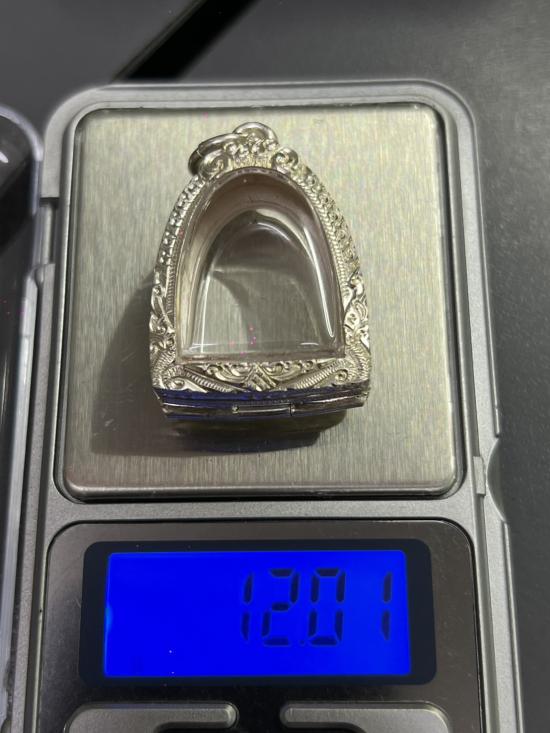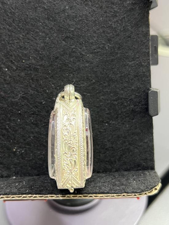 ตลับเงิน มือหนึ่ง เปิดหน้า-หลังใส่พระรูปหล่อหลวงพ่อเงิน หรือใกล้เคียง สภาพสมบูรณ์ ใครหาอยู่ไม่ผิดหวังครับ ขนาดหน้าจอ กว้าง 20mm สูง 26mm หนา 10mm หนัก 12.01 กรัม