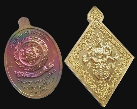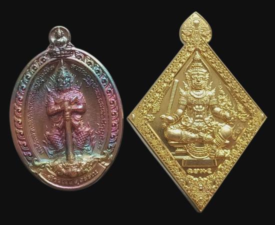 พร้อมกันทีเดียว 2 เหรียญครับ ️เหรียญท้าวเวสสุวรรณจาตุมหาราชิกา มหาบุญญาบารมี ในเมตตาอุปถัมภ์หลวงปู่จันทร์ โชติโก วัดน้ำแป้งวนาราม จังหวัดพะเยา เนื้อทองแดงพราวรุ้ง เลข ๖o๕ พร้อมกล่องเดิมจากวัด สวยงามมีมนต์ขลัง เลี่ยมห้อยคอก็สวยงาม เกจิชื่อดังปลุกเสก น่าบูชาและน่าสะสมมากๆ ครับ + เหรียญ ท้าวเวสสุวรรณ วัดพระธาตุปูแช่ จ.เชียงใหม่ รุ่นมหาบารมีหนุนดวงโคตรเศรษฐี เนื้อสัตตะโลหะ ชุบทอง ปี ๒๕๖๒ พระสวยพร้อมกล่องเดิม .."เหรียญท้าวเวสสุวรรณ" รุ่นนี้จัดสร้างขึ้นเพื่อวัตถุประสงค์ หารายได้สบทบทุนบูรณองค์พระธาตุวัดปูแช่ จ.เชียงใหม่