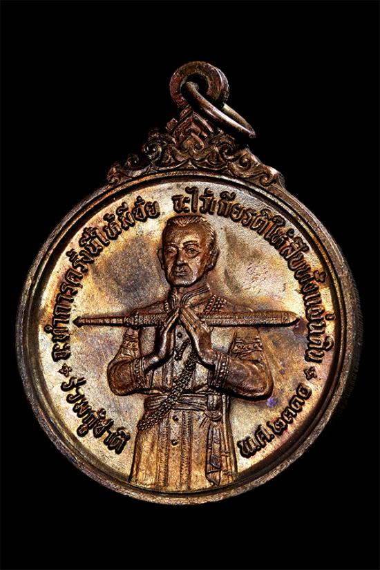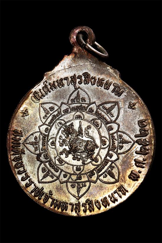 เหรียญสมเด็จบวรราชเจ้ามหาสุรสิงหนาถ (พระยาเสือ) พิมพ์พนมมือถือดาบทรงกลม สร้างปี 2521 พร้อมกับพระบรมราชานุสาวรีย์ ที่วัดมหาธาตุ ท่าพระจันทร์ กรุงเทพฯ