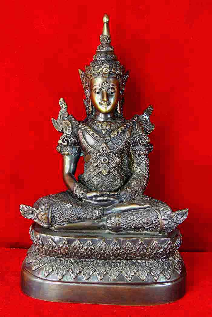 พระพุทธรูป ทรงเครื่องจักรพรรดิ์ เนื้อโลหะรมมันปู ปางสมาธิ