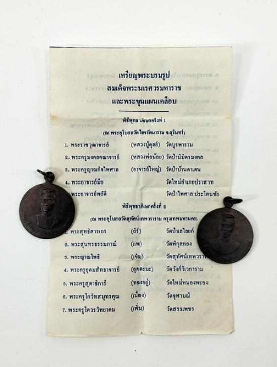 เหรียญสมเด็จพระนเรศวร หลัง พระขุนแผน พิมพ์ใหญ่2เหรียญ พร้อมใบฝอย 2ฉบับ เหรียญสมเด็จพระเรศวร มหาราช รุ่นนี้ ท่านพิศาล มูลศาสตรสาทร อดีตปลัดกระทรวงมหาดไทย และ คณะจัดสร้างขึ้น