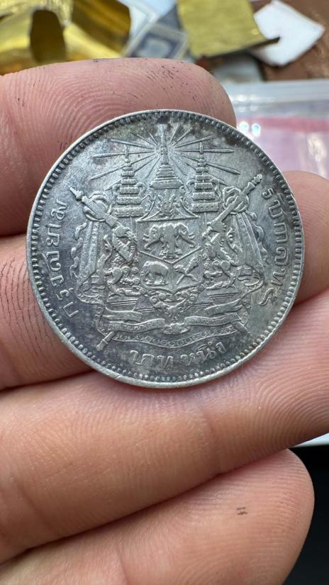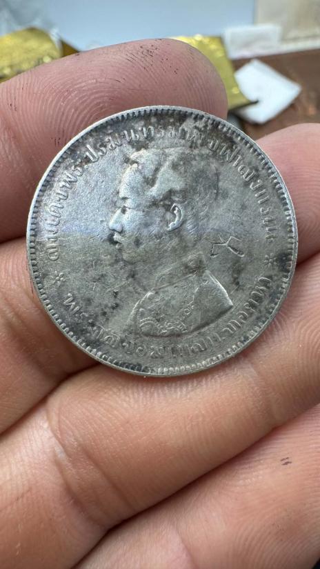 เหรียญเงินโบราณ หนึ่งบาท สมัยรัชกาลที่ 5 พระบาทสมเด็จพระจุลจอมเกล้าเจ้าอยู่หัว