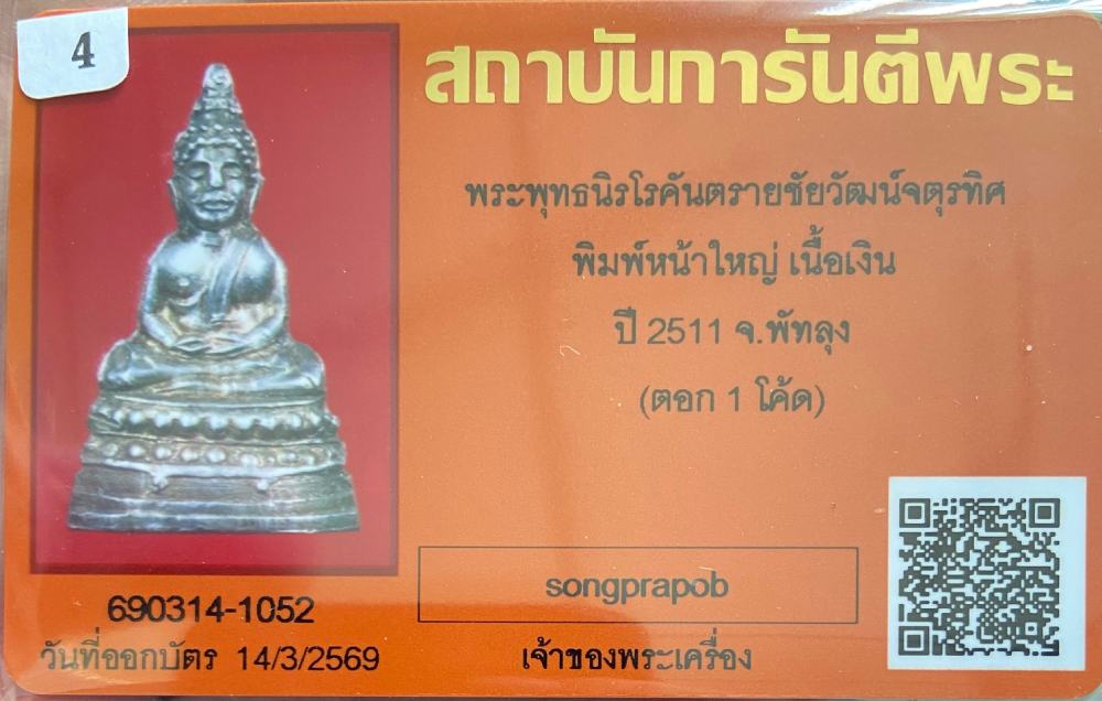 พระพุทธ นิรโรคันตรายชัยวัฒน์จตุรทิศ พระชัยวัฒน์สี่มุมเมือง ปี 2511 เนื้อเงินสร้างเพียง 100 องค์