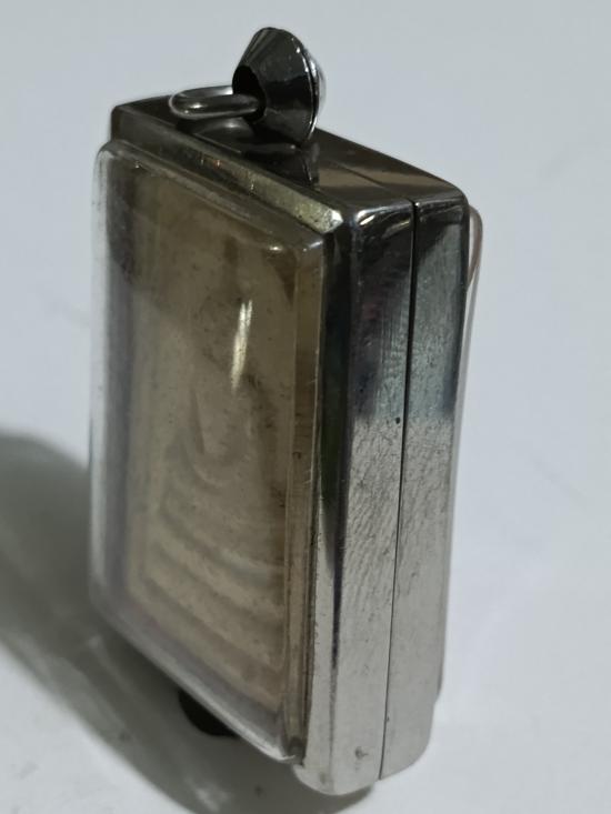 สมเด็จวัดระฆังเสาร์ห้า วัดระฆังโฆสิตาราม ปี 2536 เนื้อผงพิมพ์ใหญ่เกศทะลุซุ้ม พร้อมใส่ตลับแสตนเลสพุกใบโพธิ์อย่างดี |