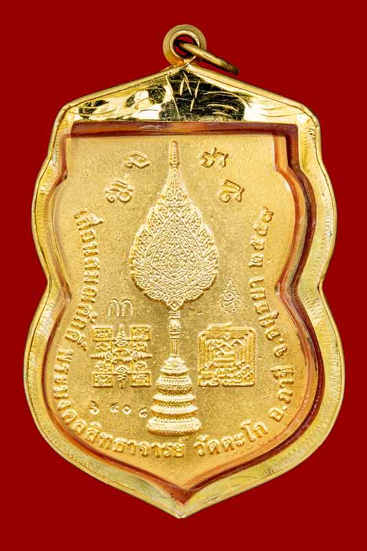 เหรียญหลวงพ่อรวย วัดตะโก รุ่นเลื่อนสมณศักดิ์ เนื้อกะไหล่ทองลงยา ปี 2559 จ.พระนครศรีอยุธยา (หมายเลข 6908) เลี่ยมกรอบทองคำแท้ |