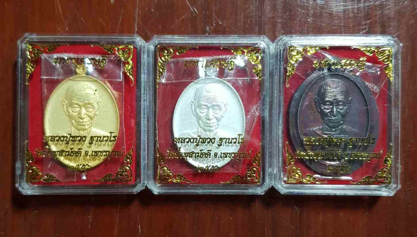 "วัดใจ" เหรียญมหาเศรษฐี ชุดกรรมการเล็ก(3เหรียญ) หมายเลขเดียวกัน 186 หลวงปู่พวง วัดน้ำพุสามัคคี จ.เพชรบูรณ์ สภาพสวยซีลเดิมพร้อมกล่องเดิมครับ
