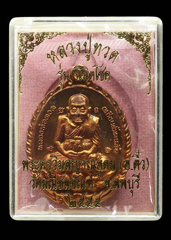เหรียญหลวงพ่อทวด รุ่นนิมิตโชค พระอาจารย์ติ๋ว วัดมณีชลขัณฑ์ จ.ลพบุรี พ.ศ.2555 เนื้อสัตโลหะ ตอกโค๊ต ตอกเลข กล่องเดิม !!