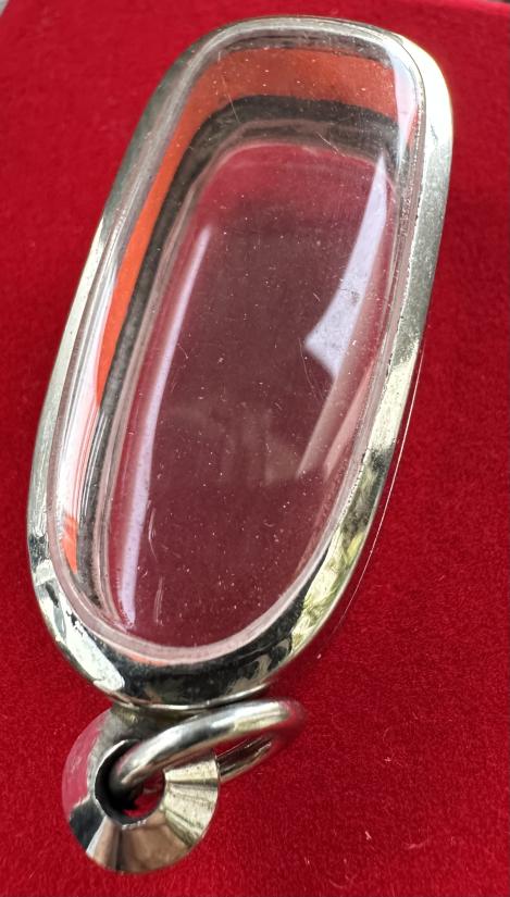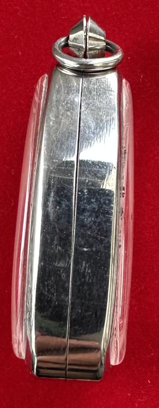 กรอบสแตนเลส เปิดหน้าหลัง ใส่พระสิวลีหลวงพ่อกวย ขนาด 1.8*4 cm