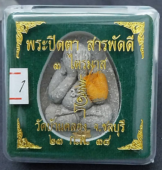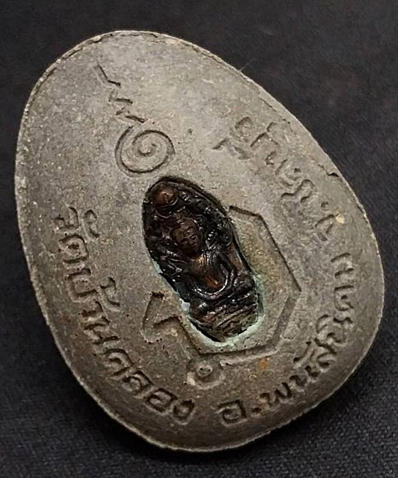 ปิดตาวัดบ้านคลอง รุ่นสารพัดดี พิมพ์จัมโบ้ เนื้อผง(เทา) หลังพระนาคปรกใบมะขามและฝังตะกรุด ปี2538