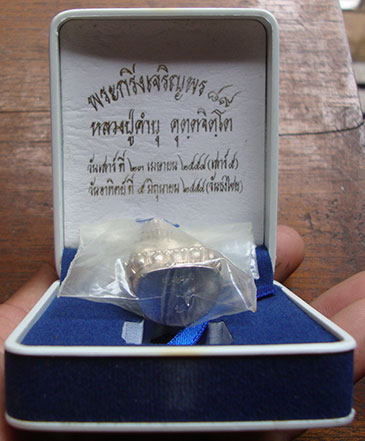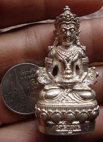 เนื้อเงิน พระกริ่งเจริญพร ปี2554 ตอกโค๊ต หมายเลข 50 กล่องเดิม สวยครับ