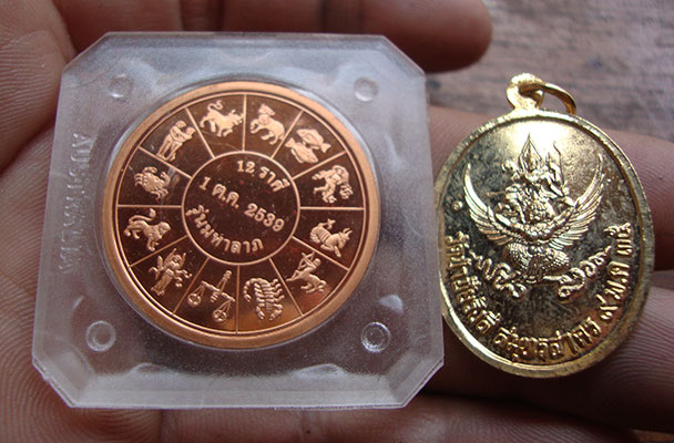 เหรียญทองแดงขัดเงา + เหรียญทรงเครื่องจักรพรรดิ์จีน ( รัชกาลที่ 5 ) 2 เหรียญ กล่องเดิมสวยครับ