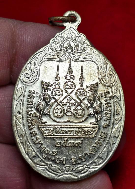 เหรียญสิงห์ราชา หลวงพ่อแย้ม วัดตะเคียน จ.นนทบุรี ปี 39 (เนื้ออัลปาก้า) |
