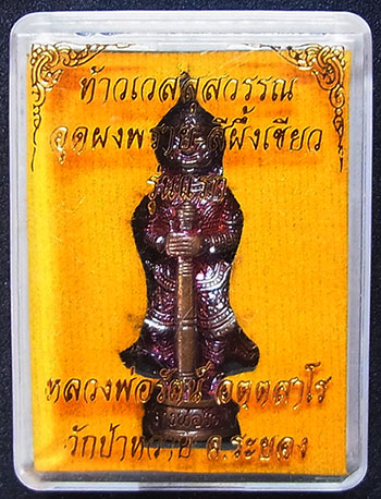 หลวงพ่อรัตน์ วัดป่าหวาย รูปหล่อท้าวเวสสุวรรณ รุ่นแรก อุดผงพรายสีผึ้งเขียว หมายเลข 364 สวยเดิมๆ กล่องเดิม รับประกันตามกฏครับ |