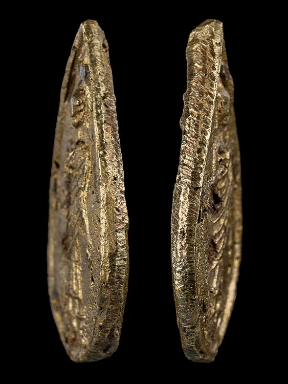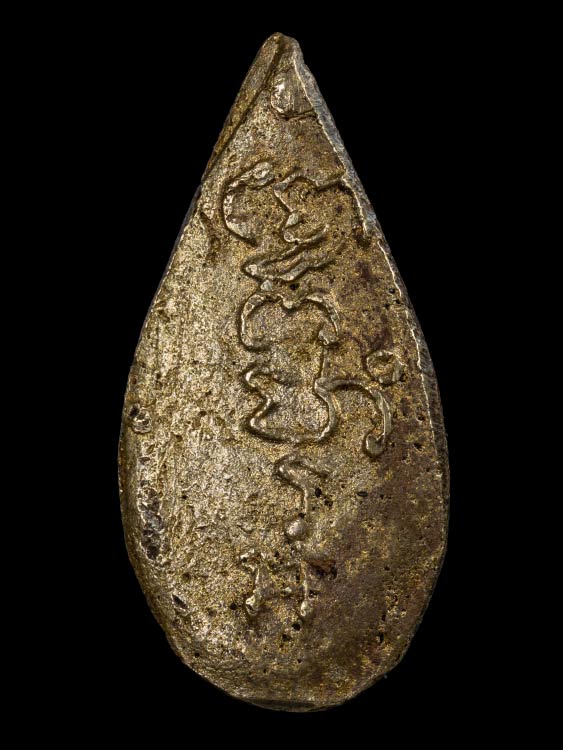 เหรียญหล่อพระคันธารราษฎร์ หลวงพ่อน้อย วัดธรรมศาลา พิมพ์หยดน้ำ เนื้อทองเหลือง ปี 2500 จ.นครปฐม
