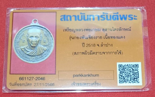 เหรียญกองพันเชียงรายปี18 หลวงพ่อเกษม เขมโก.