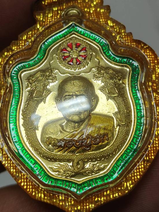 เหรียญหลวงปู่ฮกวัดราษฎร์เรืองสุข รุ่นมังกร 100 ปี กรรมการ ทองฝาบาตรลงยาเขียว โค๊ต ก NO.4572 พร้อมเลี่ยม |