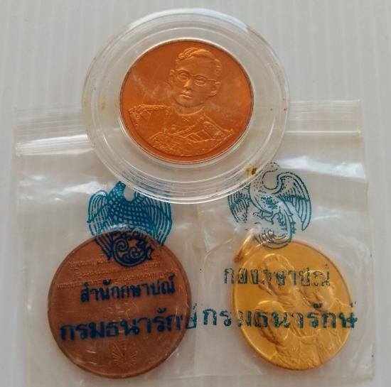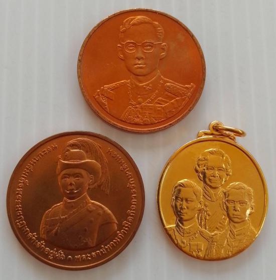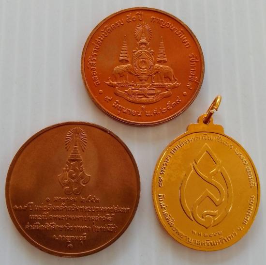 เหรียญ ที่ระลึก ร.9 กาญจนาภิเษก 50 ปี พ.ศ.39 +เหรียญร.6 119ปีแห่งวันคล้ายวันพระบรมราชสมภพ ปี43 +เหรียญที่ระลึก 89 พรรษาสมเด็จย่า ปี 2532 รวมรับจำนวน 3 เหรียญ