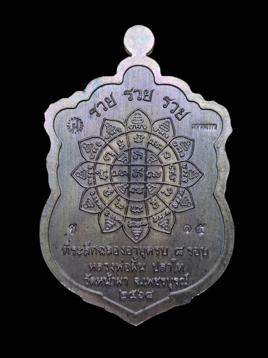 เหรียญเสมา8รอบรุ่นรวยรวยรวย หลวงปู่ฝั้น ปสาโท วัดหน้าผา (เนื้อชนวนลงยา เลข15) |