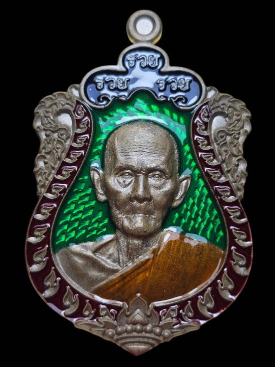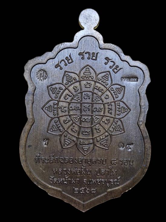 เหรียญเสมา8รอบรุ่นรวยรวยรวย หลวงปู่ฝั้น ปสาโท วัดหน้าผา (เนื้อชนวนลงยาเขียว เลข14) |