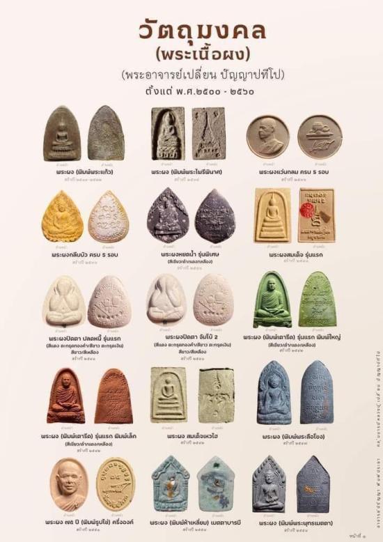 พระผงใบโพธิ์ พระอาจารย์เปลี่ยน ปัญญาปทีโป วัดบ้านปง (วัดอรัญญวิเวก) อำเภอแม่แตง จังหวัดเชียงใหม่ ครบ 5 รอบ ปี 2536 ด้านหลังติดเกศาชัดเจนครับ ออกพร้อมเหรียญรุ่นแรก ไม่มีกล่องครับ พระอาจารย์เปลี่ยน ปัญญาปทีโป ท่านเป็นพระสายปฏิบัติวิปัสสนากรรมฐาน สายพระอาจารย์มั่น ภูริทัตโตวัตถุมงคลท่านเป็นมงคลมีประสบการณ์ ด้านนิรันตรายเป็นเยี่ยม น่าบูชาครับ องค์นี้เป็นพระกลีบบัว รุ่นแรก พระอาจารย์เปลี่ยน วัดอรัญวิเวก(บ้านปง)จัดสร้างสร้างในวาระครบ 5 รอบ 60 ปี เมื่อปี2536 เนื้อผงพุทธคุณผสมเกศาของท่าน + พระผงพิมพ์เตารีด พระอาจารย์เปลี่ยน พิมพ์ใหญ่ เนื้อสีเหลือง โรยเส้นเกศาด้านหลัง ฝังข้าวสารดำ สภาพสวยเก็บเดิม ๆ พระผงพิมพ์เตารีด พระอาจารย์เปลี่ยน ปัญญาปทีโป วัดอรัญญวิเวก(บ้านปง) ตำบลอินทขิล อำเภอแม่แตง จังหวัดเชียงใหม่ พระผงรุ่นนี้ ลูกศิษย์ท่าน คือ หลวงพ่อถาวร ฐานวโร วัดป่าเหวไห้ จังหวัดอุดรธานี เป็นผู้ดำริสร้างถวายมวลสารที่สร้าง หลัก ๆ จากไม้แป้งจากพม่า ว่านต่างๆมากกว่า 108 ชนิด ข้าวสารหินดำศักดิ์สิทธิ์แห่งเมืองราด เพชรบูรณ์ เกศาพระอาจารย์เปลี่ยน ปัญญาปทีโป และของทนสิทธิ์ อีกหลายอย่าง พระรุ่นนี้พระและเณรได้ช่วยกันสร้างกดพิมพ์ กันเองที่วัดป่าเหวไห้ ในปี 2543 มวลสารรุ่นนี้รวบรวมจากทั่วประเทศทั้งจากลูกศิษย์ของหลวงพ่อถาวร และพระอาจารย์เปลี่ยน นำมาถวาย รวมทั้งมวลสารของพระอาจารย์เปลี่ยนเองด้วย และก่อนที่จะได้เอาไปพิมพ์พระนั้น มวลสารได้ถูกอธิฐานจิตโดยพระสงฆ์ และสามเณรในจังหวัดอุดร ร่วมร้อยรูปอีก 1 คืนเต็ม แล้วจึงเอาไปพิมพ์เป็นองค์พระ หลังจากนั้น ได้ถวายพระอาจารย์เปลี่ยน เพื่ออธิฐานจิตนานถึง 1 พรรษา โดยมี 2 พิมพ์ คือ พิมพ์เตารีดใหญ่ และ เตารีดเล็ก ทั้งหมด มี 4 วรรณะ สีเขียว ดำ เหลือง และแดง