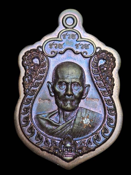 เหรียญเสมา8รอบรุ่นรวยรวยรวย หลวงปู่ฝั้น ปสาโท วัดหน้าผา (เนื้อนวะไม่ตัดปีก หลังเรียบลงยาจีวร อุดมวลสาร เกศา จีวร หล่อพ่อแก่นารอดลงยา ตะกรุด2ดอก ฝังเม็ดนะเลข6) |