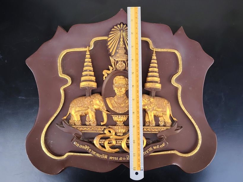 แผ่นบูชาฉลองสิริราชสมบัติ ครบ ๕o ปี พุทธศักราช ๒๕๓๙ ไม่ใช่โลหะ หนาและมีน้ำ้หนักครับ
