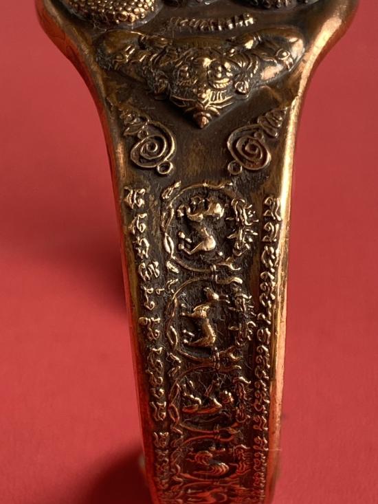 เคาะเดียวแดง กำไล องค์พ่อจตุคาม-รามเทพ รุ่นมงคลจักรวาล เนื้อสำริด เลข 974