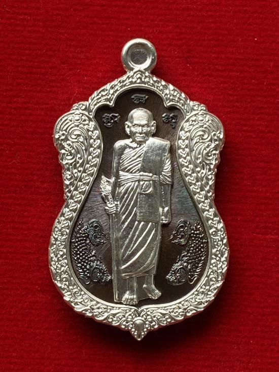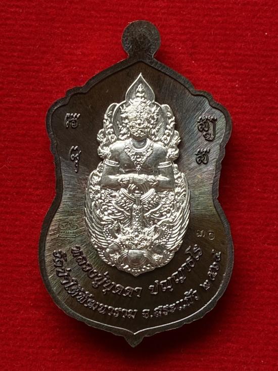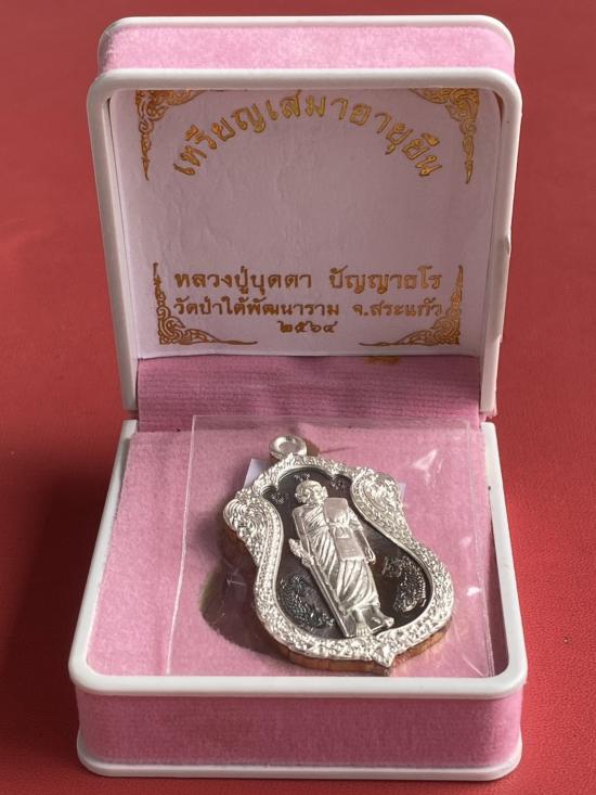 เคาะเดียวแดง หลวงปู่บุดดา รุ่น เสมาอายุยืน รายการที่7 เนื้อ นวะ ขอบเงิน หน้ากากเงิน หน้าหลัง