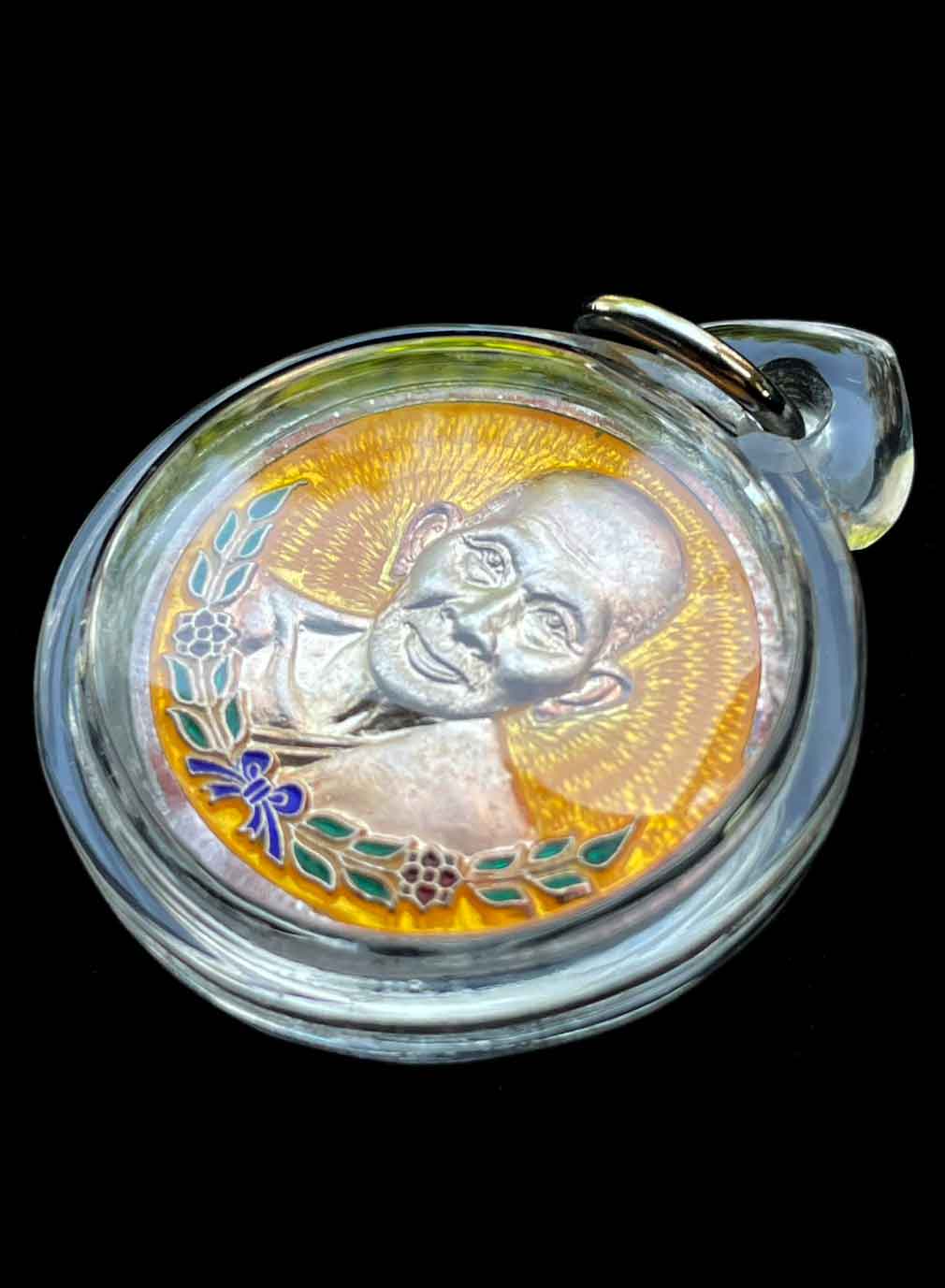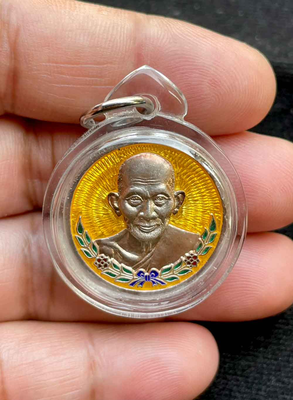 เหรียญหลวงปู่ศุข วัดปากคลองมะขามเฒ่า เนื้อเงินลงยาสีหลือง ปี 2538