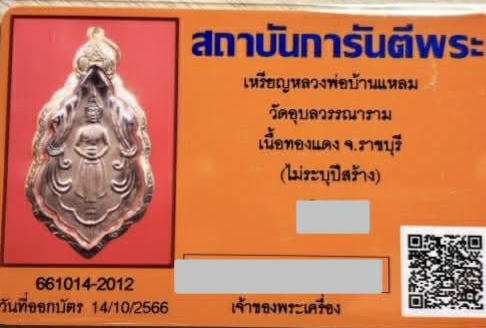 เหรียญหลวงพ่อวัดบ้านแหลม เนื้อทองแดง สวยๆ + มีบัตรรับรอง ((ไม่มีกรอบทอง))***