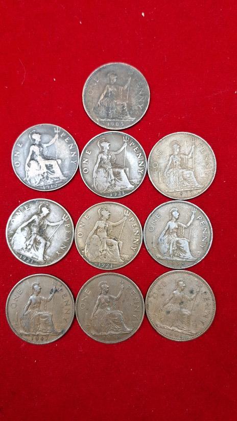เหรียญ One Penny ของสหราชอาณาจักร ปี1912, 1921, 1938, 1947,1965 รวม 10เหรียญ