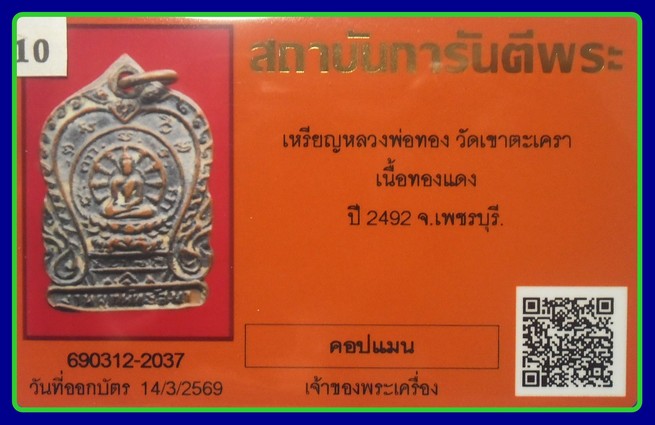 บัตรการันตี-600-เหรียญเสมาเล็ก ลพ.วัดเขาตะเครา จ. เพชรบุรี พศ.2492 |