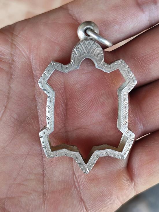 กรอบเงินรูปเต่า เปอร์เซ็นต์สูง 92.5 + + น้ำหนัก 13.3 กรัม เคาะเดียวแดงงานแกะมือสวยมาก |
