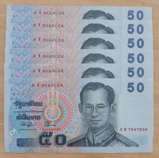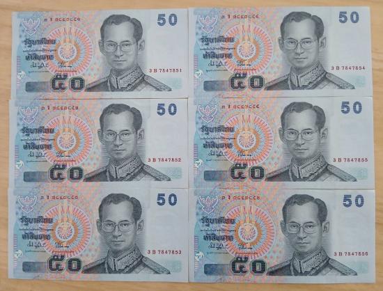ธนบัตร 50 บาท เลขเรียง 6 ฉบับ เลข 3 ข 7847851 ถึง 56