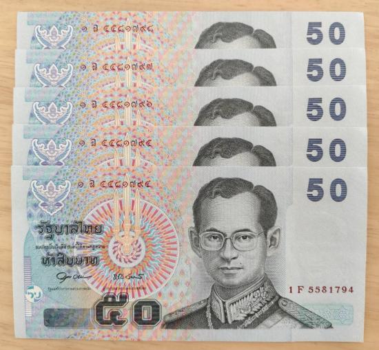 ธนบัตร 50 บาท เลขเรียง 5 ฉบับ