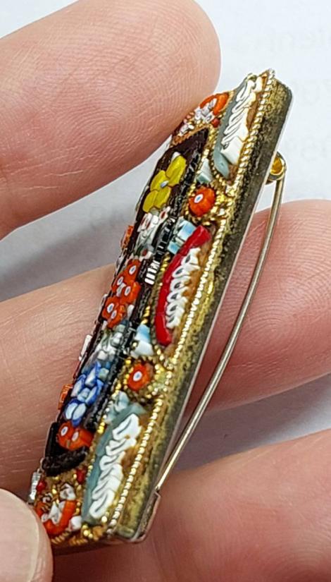 เข็มกลัดไมโครโมเสก สไตล์อิตาลี แบบวินเทจ (Vintage Italian Micromosaic Brooch)