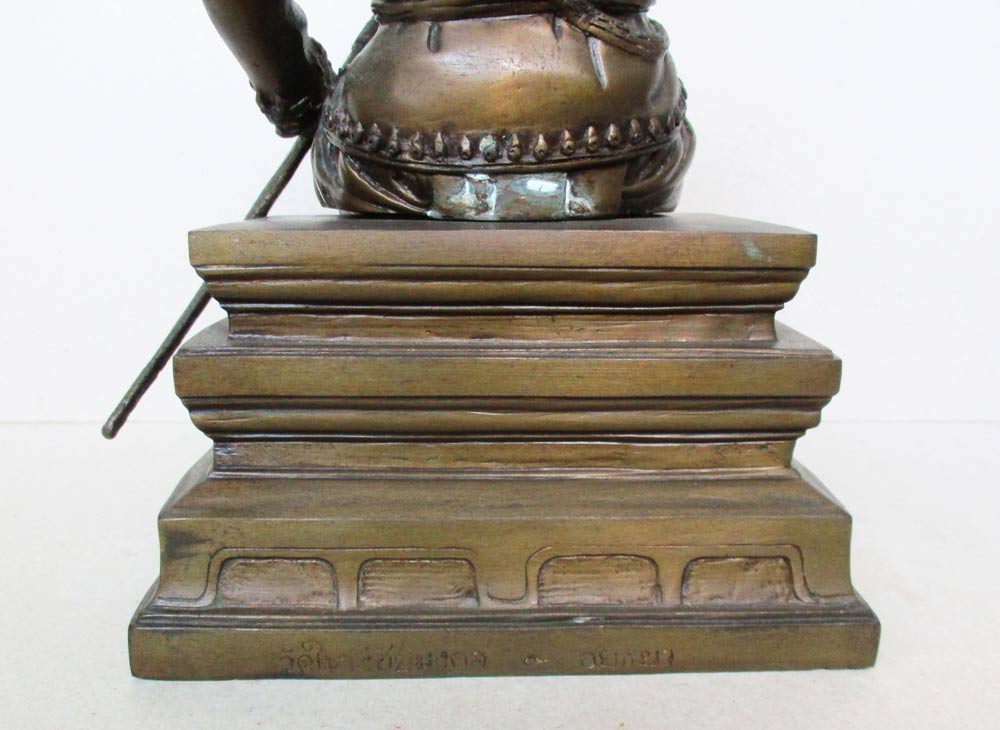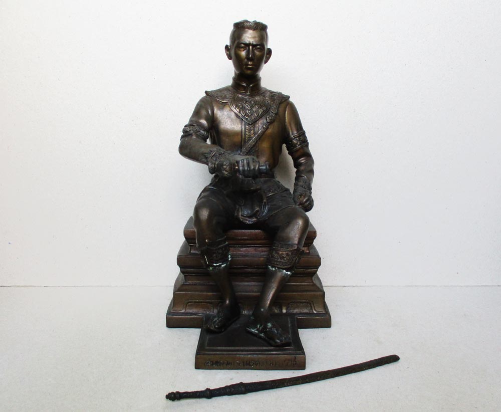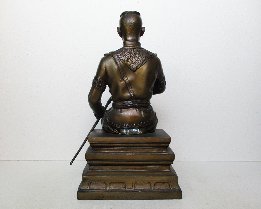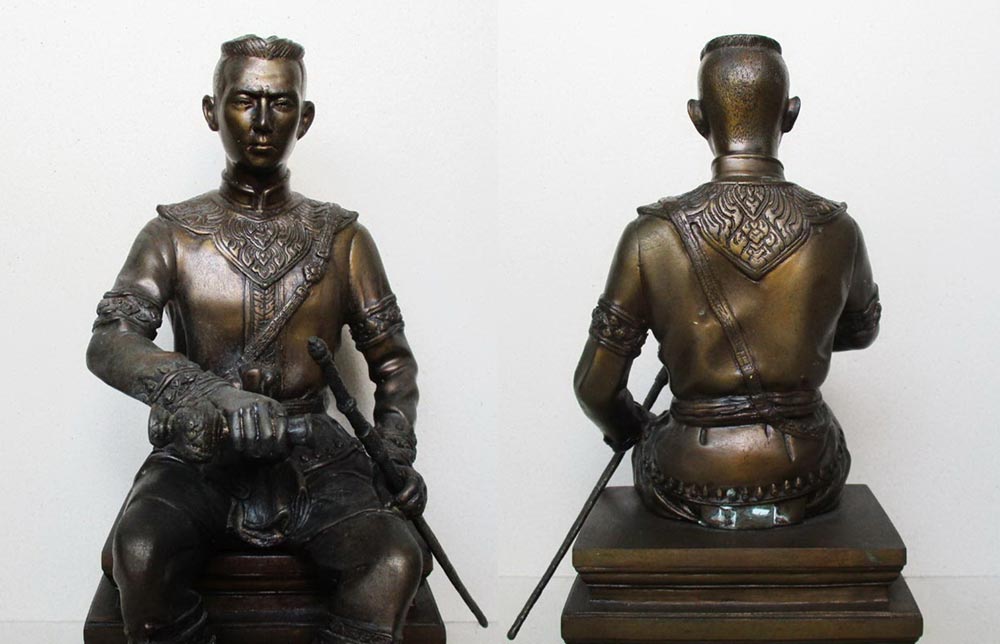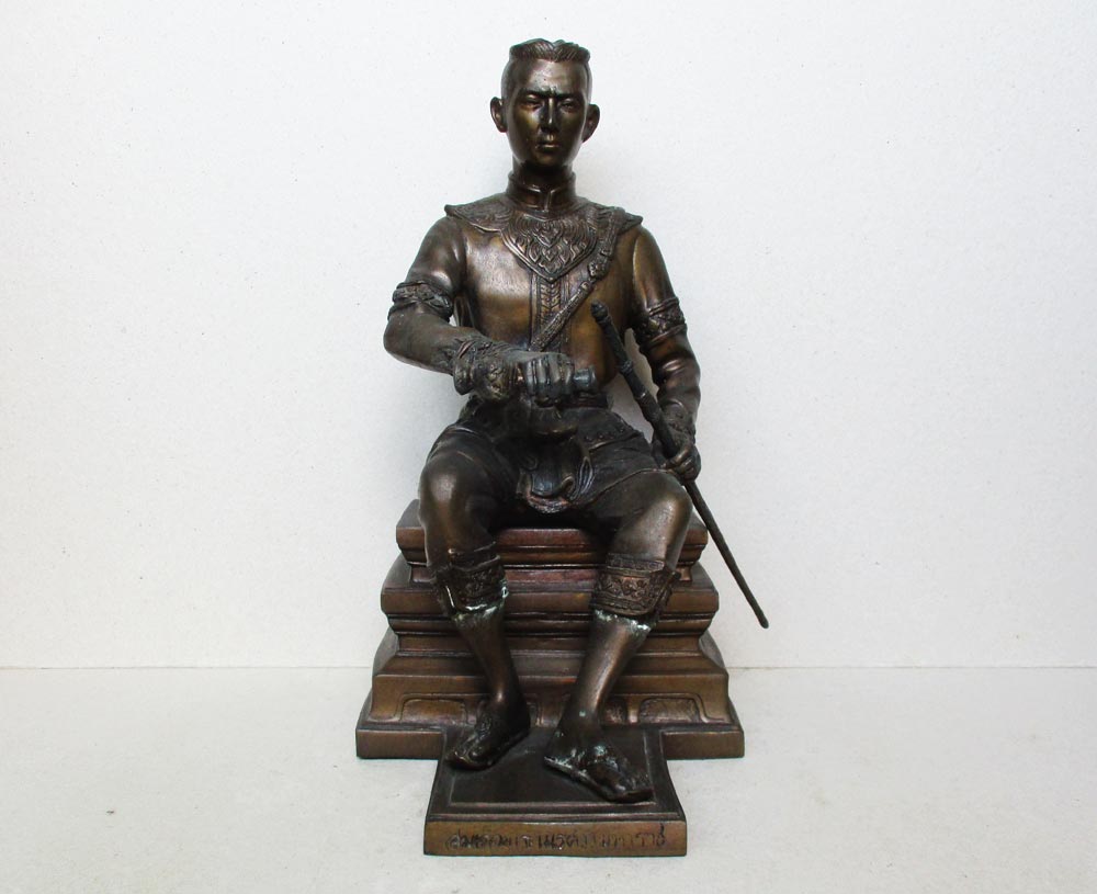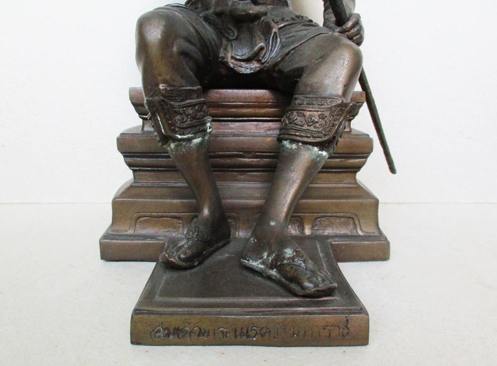 สมเด็จพระนเรศวรมหาราช วัดใหญ่ชัยมงคล จ.อยุธยา เนื้อโลหะรมน้ำ ตาลมันปูผิวหิ้ง ฐานขนาด 7 นิ้ว X 9 นิ้ว สูงรวมฐาน 13.5 นิ้ว งานโลหะประกอบได้ 3 ถอด สภาพสวยสมบูรณ์ !!