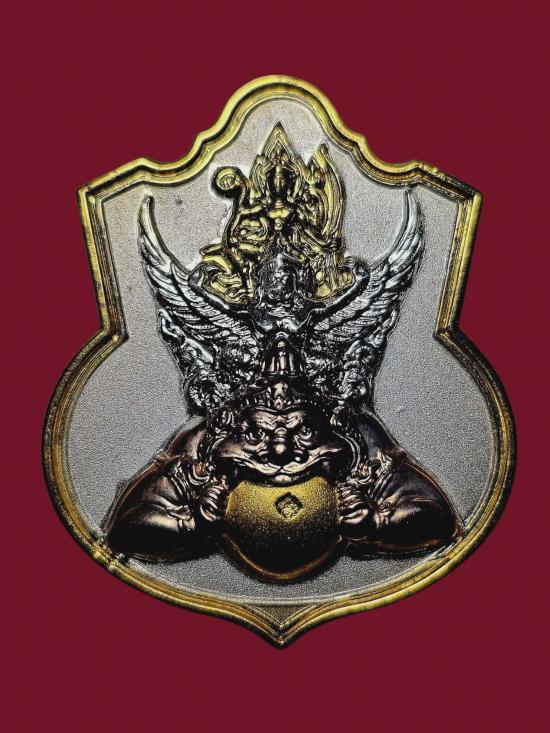 เหรียญนารายณ์ทรงครุฑประทับราหู รุ่นแรก ท่านเจ้าคุณธงชัย วัดไตรมิตร ปี 45 เนื้อชุบ 3 กษัตริย์