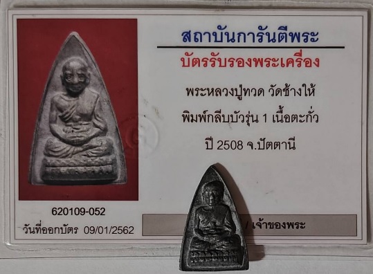 พระหลวงหลวงปู่ทวด วัดช้างให้ พิมพ์กลีบบัว รุ่น 1 เนื้อตะกั่วสวยเดิมมาพร้อมบัตรรับรองพระแท้