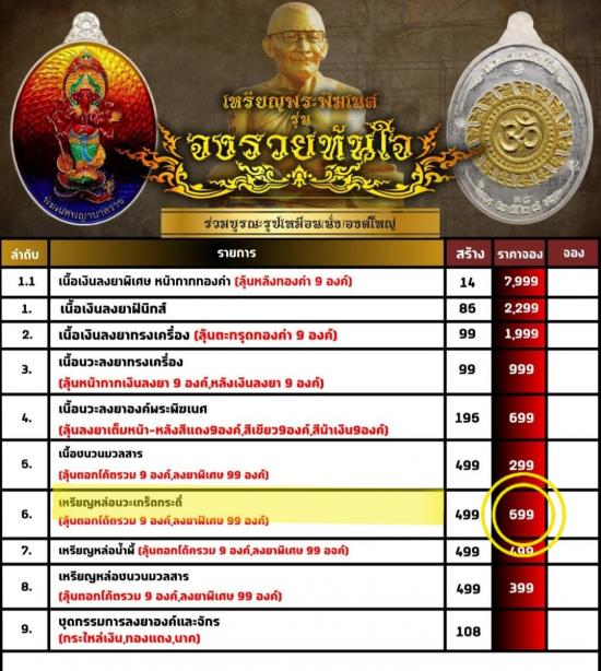 ราคาจององค์ละ 599 บาท องค์นี้เคาะแรกแดง เท่าไหร่เท่านั้นครับ |